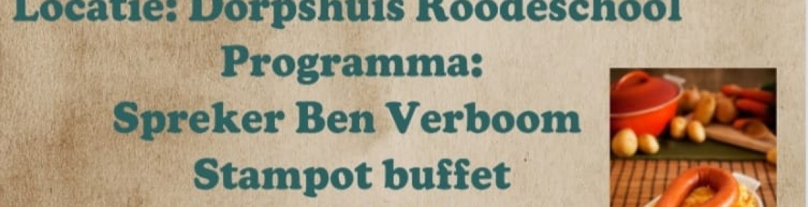 deze avond is er een stampotbuffet, een spreker Ben Verboom, een actifiteit, en een hapje en drankje