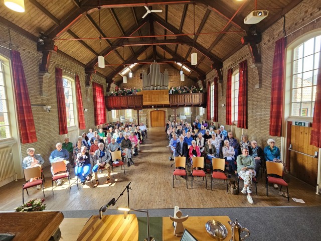Afgelopen zondag genoten ruim 150 deelnemers op enigerlei moment van happen en trappen langs 3 kerken. Voor de wind aan ging de eerste tocht naar Roodeschool, waar in de Ontmoeting koffie en heerlijk gebak op de deelnemers wachtte. Na een mooie ochtendvesper vertrok de groep fietsers door de polder en tegen de wind in naar het Anker in Uithuizermeeden. Hier werd de inspanning beloond met een lekker hapje en drankje. Er volgde een mooie overdenking door ds. Segger, waarin hij de link legde tussen het moeten opladen van de fietsaccu en het opladen van het geloof door de verhalen van Jezus die zich onderweg ook voedde, aan de tafel van samen. Hierna werd de tocht vervolgd naar de Kandelaar in Uithuizen en ging men samen aan tafel en was er soep en brood. De zonnig begonnen dag eindigde met een sing-inn o.l.v. het plaatselijk combo en eindigde met ‘Ga met God en Hij zal met je zijn’. De voorbereidingscommissie ziet terug op een gezegende dag en nodigt de deelnemers uit voor de schuurdienst die weer zal worden gehouden in juni 2025.