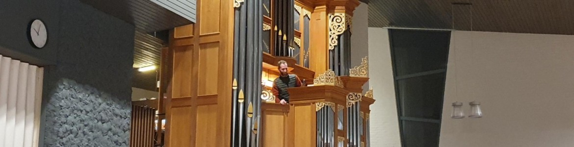 Zaterdagavond 15 november bracht organist Jaap Sake Heeringa (uit Dokkum) een prachtig concert ten gehore op het Menze Ruiter orgel in Het Anker. Een concert dat geheel in het teken stond van het Bijbelse scheppingsverhaal. Iedere scheppingsdag werd op zeer creatieve wijze muzikaal weergegeven. Van het geweld op de eerste dag tot op de dag dat de vogels rond vlogen, wateren gingen stromen en de zon & maan de aarde gingen verlichten. Op de laatste dag eindigde het concert met ingetogen orgelklanken. Tussen de improvisaties door was er samenzang. Nog even te vermelden dat de organist alles speelde zonder 'papieren', dus gewoon uit z'n hoofd! Een geweldige prestatie die beloond werd door een staande ovatie. Het Menze Ruiter orgel heeft deze avond even al zijn mogelijkheden laten horen!